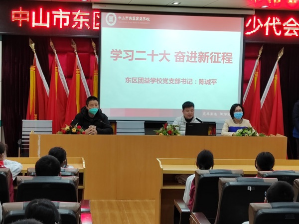 2022年12月28日,中山市東區團益學校第六屆少代會順利召開。出席本次少代會的有團益學校黨支部書記陳誠平、少工委主任肖春來、少先隊總輔導員吳錦宏以及82名少先隊員代表。