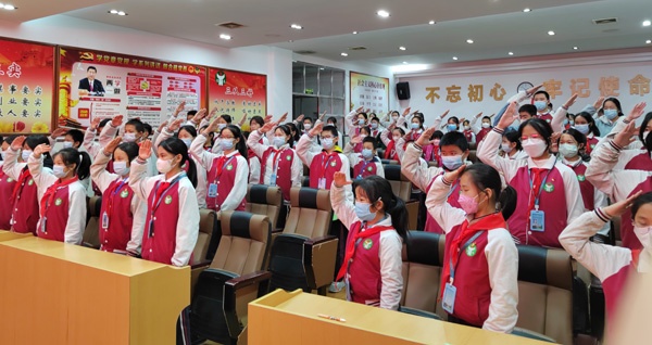學校黨支部書記陳誠平帶領隊員們一起學習黨的二十大精神。與會少先隊員們認真的傾聽,仔細的領會。