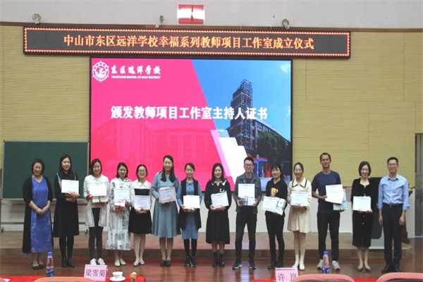11月19日下午,遠洋學校小學部在A1階梯室舉行工作室的成立儀式。到會的嘉賓有中山市教體局教研室小學語文教研員梁雪菊老師,東區遠洋學校林華志副校長,東區遠洋學校教導處行政以及東區遠洋學校幸福工作室主持人及相關成員。