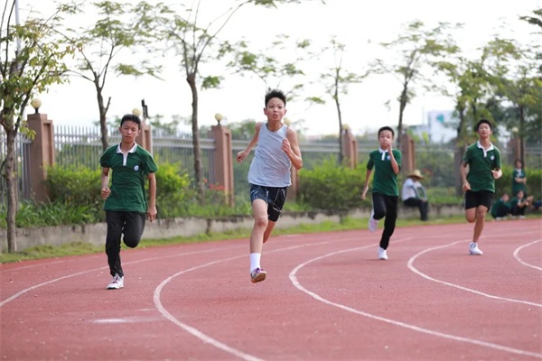 本屆學校運動會項目有:男女徑賽100米、200米、800米等;田賽設實心球、立定跳遠等;此外還設置了4×100米等男女接力項目。為更好地體現體育運動的全員參與性,增加班級集體凝聚力,還設立了韻律操、班級集體跳繩、迎面接力、足球繞桿等集體項目,教師也進行了趣味體育比賽。