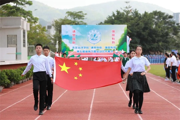2021年11月4日,東區遠洋學校(中學部)“請黨放心 強國有我”體育節暨第五屆運動會如約而至,運動會歷時2天,29個班級全部參加入場展示和比賽角逐。