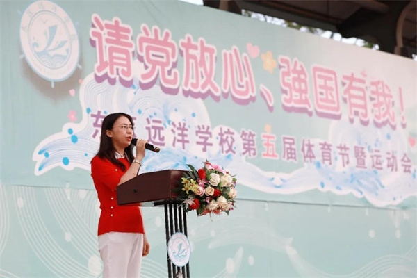 中學部黨支部書記、副校長宋旗芬在致詞中闡述了校運會的意義,并希望每位運動員精神飽滿,斗志昂揚,努力拼搏,賽出風格。運動員、裁判員代表先后發言并進行了莊重的宣誓。學校黨總支書記,校長許嵐宣布:東區遠洋學?!罢堻h放心 強國有我”體育節暨運動會開幕 !