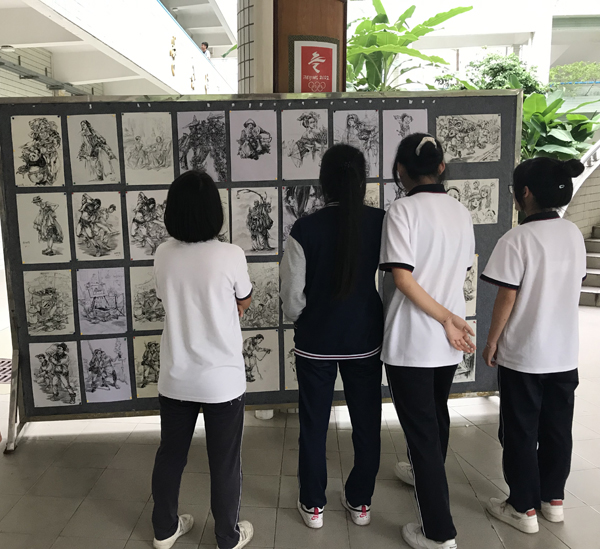 本次展覽為期兩周,先后展出美術書法作品,共計作品100余幅。此次展覽作者為東區中學2020級全體美術書法生,同學們經過兩年的專業學習,將自己對專業的追求與執著用畫筆描繪、毛筆書寫出來。