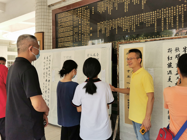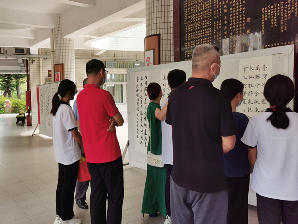 2022年6月28日,中山市東區中學美術書法作品展隆重開幕,參加此次展覽的有東區中學謝柏芳校長、馬榮林副校長、高宏副校長、教導處尹冬枚主任、班主任和全體藝術生家長。謝柏芳校長致開幕詞,謝校首先對此次展覽給予充分的肯定,并指出在當前的國際背景下要增加文化自信,而中國書畫屬于中國傳統文化精髓,要充分繼承和發揚。最后祝愿學生們在翰墨書香中取得理想成績!