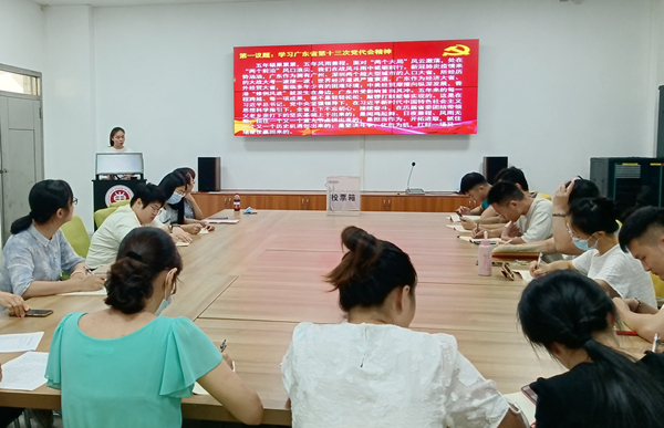 會議由支部書記王穎麗同志主持。王穎麗同志首先帶領全體黨員深入學習廣東省第十三次黨代會精神。她指出,廣東省第十三次黨代會全面總結了五年來廣東經濟社會發展和黨的建設取得的成績,繪就了今后五年廣東的發展藍圖,吹響了廣東在新征程中創造新輝煌的沖鋒號,為我們做好今后的工作指明了方向,增強了動力。王穎麗表示,全體黨員要充分認識學習宣傳貫徹省第十三次黨代會精神的重大意義,學深悟透、真抓實干,把思想和行動統一到黨代會作出的決策部署上來,不忘教育初心,自覺履行為黨育人、為國育才的使命,扎根課堂講好中國故事,以優異成績迎接黨的二十大勝利召開。
