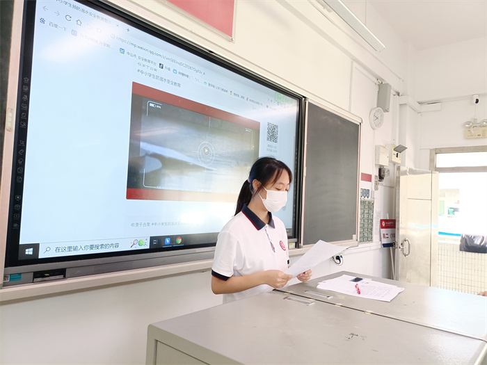 首先,學校組織各班學生認真觀看了廣東省青少年預防溺水宣傳片。通過宣傳片讓學生們了解近年來發生在全國的中小學生溺水案例,一個個真實的案例,震撼著學生的心靈,也讓每個學生充分認識到安全的重要、生命的可貴,讓安全警鐘在同學們的腦海中常常響起。
