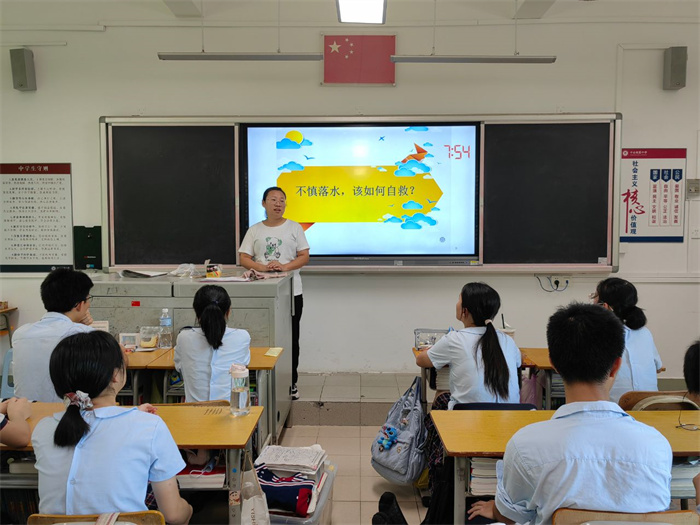 接著,班主任們為本班學生進行防溺水教育主題班會課。班主任們利用課件為同學們講解防溺水安全知識,重點教育導致溺水的原因以及如何自救、遇到溺水者如何救護等基本知識。通過本次班會課,不僅有效提升了學生的防溺水安全意識,還提高了學生自我保護和自救能力。