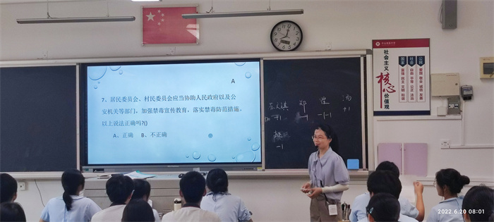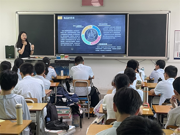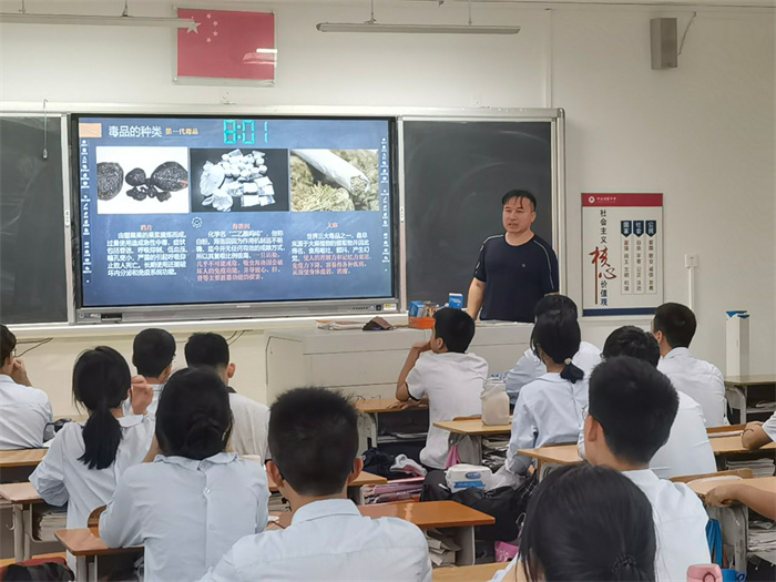 升旗儀式結束后,各班級積極召開禁毒教育主題班會課。各位班主任利用禁毒主題PPT課件,形象生動地給學生講解了毒品知識、毒品危害、預防和遠離毒品的方法措施,使學生了解了毒品的相關知識和吸毒的嚴重后果,以及吸毒對家庭和社會危害性等等。班會課期間,同學們積極互動,反響強烈,達到了很好的宣傳學習效果。