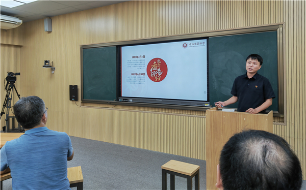 為重溫黨的光輝歷程,唱響新時代主旋律,進一步激勵第二黨支部教師堅定理想信念,奮進新征程,建功新時代,7月4日,中山市東區(qū)中學(xué)第二黨支部以“紫荊花又開,同心再啟航——喜迎香港回歸祖國25周年”為題的黨課在學(xué)校錄播室開講。