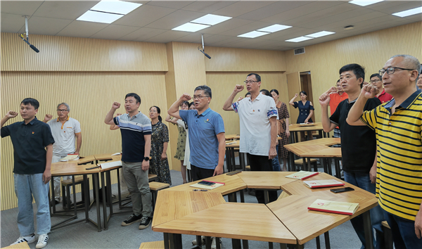 黨課之后,第二黨支部全體黨員重溫入黨誓詞。“我志愿加入中國共產(chǎn)黨,擁護黨的綱領(lǐng),遵守黨的章程,履行黨員義務(wù)……”在葉雋書記的帶領(lǐng)下,全體黨支部成員舉起右拳,面向黨旗莊嚴宣誓,重溫入黨初心。莊重神圣的誓詞,鏗鏘有力的宣誓聲,強烈震撼著每一位黨員。錚錚的誓言,不變的初心,體現(xiàn)了全體黨員對中國共產(chǎn)黨的無限忠誠與熱愛。