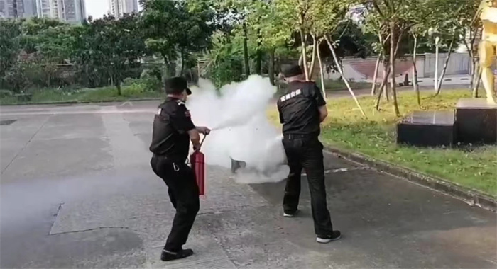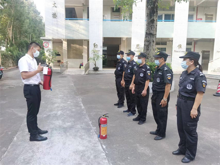 培訓的第二個內容是消防演練。培訓開始,吳經(jīng)理就火災發(fā)生的原因,日常消防巡查的注意事項,滅火器的使用方法等進行了詳細的講解。最后,對值班保安發(fā)現(xiàn)校園火災的正確處置流程進行了模擬演練。