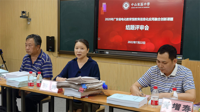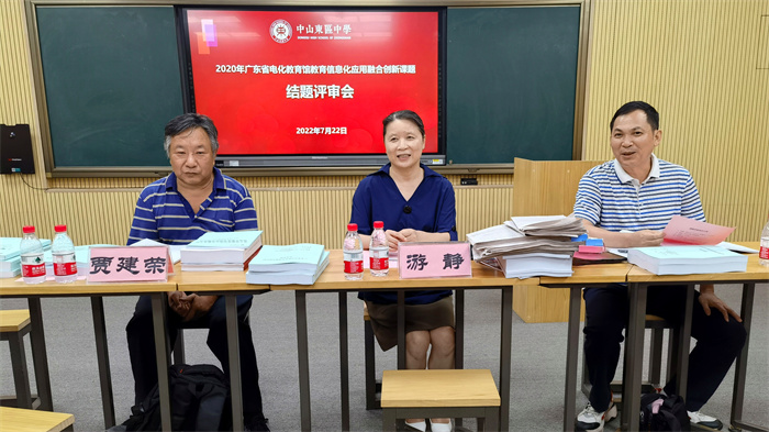 經過為期兩年的深入研究,2022年7月22日下午,中山市東區中學《基于SPOC的線上線下混合式高中教學模式行動研究》、《基于省教育資源公共服務平臺的高中整本書閱讀研究》、《基于語料庫驅動下的高中外語閱讀教學實踐研究》等三個2020年廣東省電化教育館教育信息化應用融合創新課題在學校錄播室迎來結題評審會。此次會議邀請了中山市教育技術中心副主任游靜、賈建榮老師、中山市教育教學研究室高中生物教研員黃增壽老師三個專家。會議由學校教導處尹冬枚副主任主持,三個課題組全員參與。