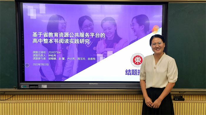 鐘檢秀老師陳述《基于省教育資源公共服務平臺的高中整本書閱讀實踐研究》的結題,該課題以廣東省教育資源公共服務平臺為依托,以《邊城》和《史記》的整本書閱讀為文本,通過預熱、通讀、研讀、讀寫結合不同階段的實踐活動探討整本書的閱讀實踐研究。研究建構了基于省教育資源公共服務平臺的整本書閱讀路徑;探索出整本書研讀階段的有效指導策略;驗證了省教育資源公共服務平臺能夠有力助推整本書閱讀。研究還發現,課題的研究提升了學生的閱讀能力,促進了教師的專業化成長。