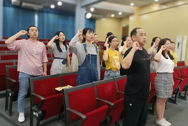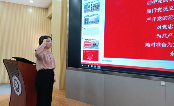 黨課結束,在孟書記的帶領下,全體黨員重溫了入黨誓詞。全體黨員不忘初心,在鏗鏘誓言中汲取前行的力量。