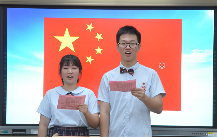 活動第一項,舉行“銘記歷史 勿忘國恥”主題升旗儀式。伴隨著莊嚴的《義勇軍進行曲》,鮮紅的五星紅旗冉冉升起,師生們齊唱國歌,肅立默哀,表達對烈士的崇高敬意和深切懷念。升旗儀式結束后,高二6班李君霖同學作了題為《國家安全 你我共守護》的國旗下演講,倡議大家學習國防知識,增強國防觀念。