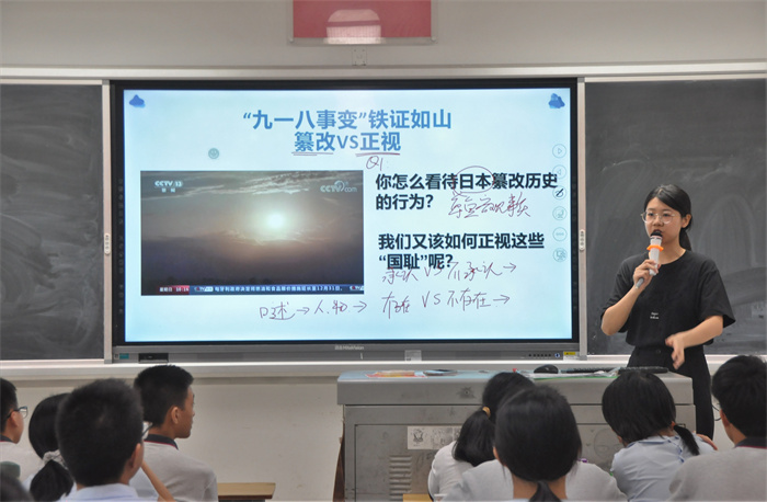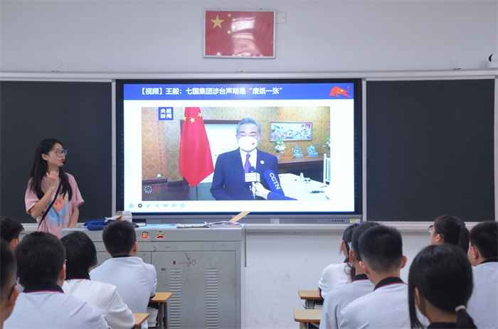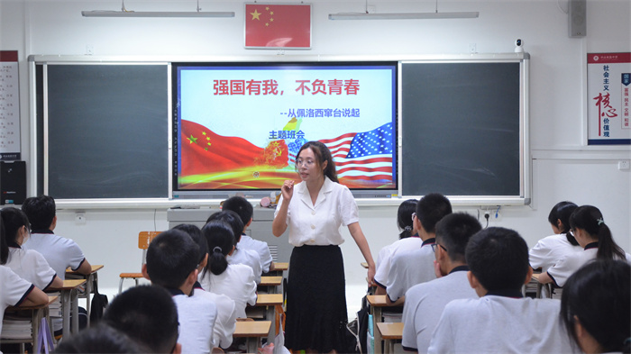 班會課上,有的班主任老師通過回顧歷史,從“九一八”事變展開論述;有的班主任則通過展示時事新聞,從佩洛西竄臺開始講起。班主任們從國防安全的含義、國防安全教育意義、國防安全事件、現代化國防建設等多個維度引導學生了解國防安全的重要性。