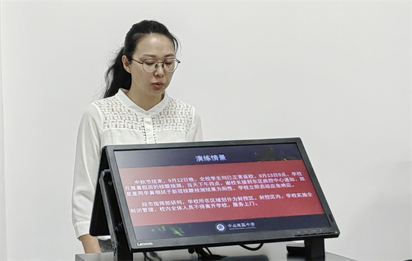 “中秋假期后在校園常態化核酸抽測中,發現一名學生鼻咽拭子核酸檢測結果為陽性,學校如何啟動應急響應機制?如何合理安排校園封控期間的防疫管理工作?”9月9日,在中秋假期開始之前,中山市東區中學開展了校園疫情防控應急模擬桌面推演活動,旨在進一步檢驗提高學校新冠疫情防控應急處置能力,確保師生假期后安全有序返校。