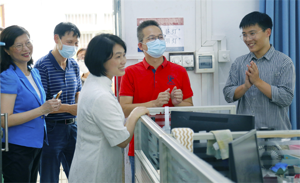 巡視校園期間,馮金怡副主席還聽取了謝柏芳校長關于學校辦學情況的匯報。謝校長向市、局領導介紹了學校的基本情況以及學校發展存在的難點和焦點問題。馮金怡副主席對學校的創新發展理念和近年來取得的進步給予了高度肯定,她說:“學校雖小,但很精致,很有內涵,東區中學為中山孩子們做出了很大的努力。”針對學校發展中遇到的困難,特別是學生宿舍、功能場室不足等問題,她表示,將進一步深入調研了解情況,積極同各級領導和相關部門認真研討,努力推動落實解決。她勉勵學校領導班子,教師是學校發展的第一資源,要切實關心、關愛教師,在有限的條件下,努力探索為教師創造良好的工作、學習和生活條件,讓教師安心從教、潛心育人,推動學校教育教學質量再上新臺階。