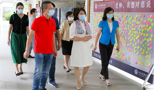 9月8日下午,在第38個教師節來臨之際,中山市政協副主席馮金怡帶隊到東區中學走訪慰問一線教師,為老師們送上節日的問候與祝福。市政協副秘書長張潔瑩、市政協港澳臺僑和外事委員會副主任羅玉靜、市教體局四級調研員閆玉宏參加慰問。