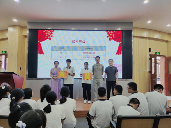 講座伊始,高二年級楊婷婷主任針對高一下學期的期末成績進行了總結。上學期期末考試中涌現出了一大批表現突出的同學,為了鼓勵先進,發揮模范表率,年級分別對卓越學子、學習標兵、單科狀元、進步之星等成績優異的同學進行了表彰。針對物理班與歷史班中的狀元班級也進行了表彰,分別是高一5班和高一9班。