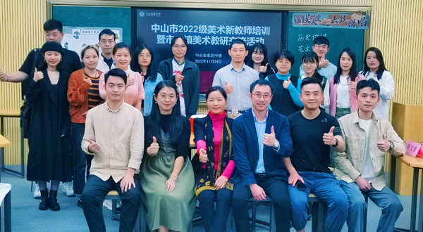 2022年11月24日下午,中山市2022級美術新教師培訓暨市、鎮美術教研交流活動在中山市東區中學順利舉行,東區中學副校長周雨寰、中山市名教師劉堅工作室成員、中山紀念中學集團化美術教研組長張寶峰、中山紀念中學集團化學校、中山市濠頭中學以及東區中學美術科組、傳統文化科組等美育骨干教師出席了本次教研活動,因疫情防控要求,2022級美術新教師分別以線上與線下相結合的方式參與本次交流與學習。