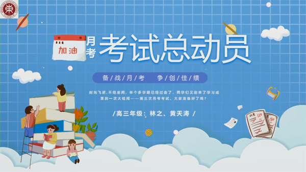 在距離2023年高考200天之際,為強化高三備考沖刺意識,鼓舞高三師生士氣,瞄準目標,闊步前行,高三年級于11月19日第九節課借助釘釘平臺召開主題為《備戰月考,爭創佳績》月考動員大會。會議由年級主任林之老師主持,學校領導,全體高三師生認真聆聽了本次會議。