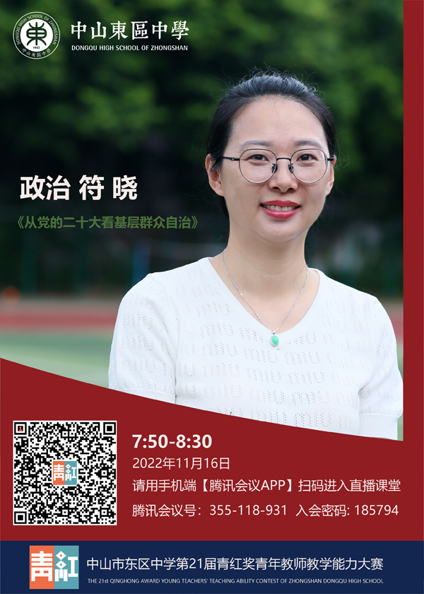中山市東區中學第21屆“青紅獎”青年教師教學能力大賽邀請函