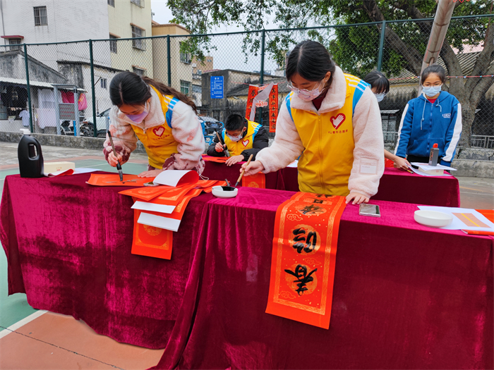 無聯不成春,有聯春更濃。在農歷新春來臨之際,為進一步提高喜慶祥和的節日氣氛,讓社區居民切實感受到年味,2023年1月17日,中山市東區中學校團委聯合桃苑社區,組織學生開展“青春情暖,揮春到家”活動。中山市東區中學高三年級書法生積極參與了本次活動。