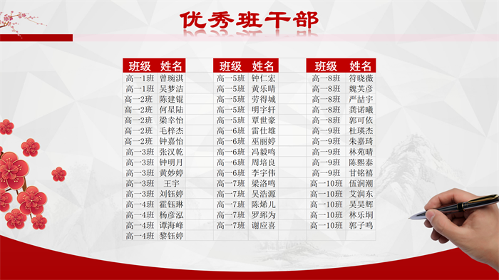 接下來,彭主任對本學期表現優秀的學生進行表彰,所頒發的獎項有:校園十佳、優秀學生干部、優秀團干部、優秀班干部、三好學生、文明宿生。獲獎學生們在本學期展現出了良好的精神面貌,彰顯了榜樣的力量。屏幕另一方的家長和學生,也都紛紛在釘釘群內留言,為獲獎的同學點贊。
