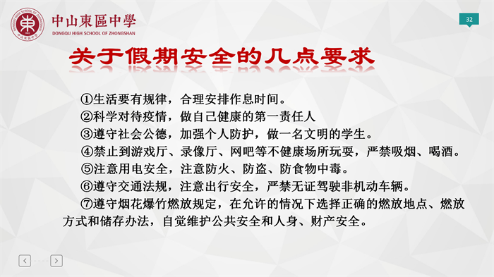 說起假期,“安全”是極其特別重要的關鍵詞。為了加強同學們的法律意識和安全意識,提高自我保護的能力,我校邀請了紫馬嶺派出所警察為同學們進行了一場寒假安全教育講座,內容豐富、意義深遠。此外關于假期安全,彭主任特別強調:希望同學們在假期能夠合理安排作息時間;加強自身安全思想意識,注意用電安全、交通安全;陽康后的一些注意事項等。