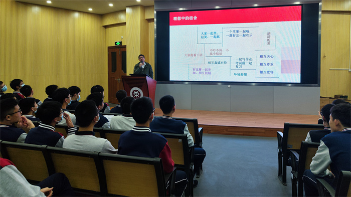 為了加強學校宿舍管理,提升住宿生的自我管理和自我約束能力,營造良好的學習和生活環境,2023年2月5日晚上,中山市東區中學于報告廳召開本學期宿生會議,本次會議由德育處蔡昌盛主任主持,分男女生兩場,宿管老師和住宿生參加。