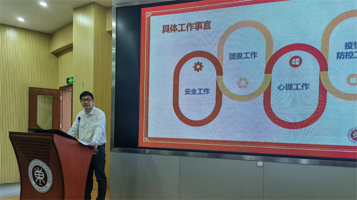 團委程超書記對近期團委工作進行梳理及近期重要活動進行了梳理,例如團代會學代會的召開、慈善義賣等。隨后,團委鄭淑儀副書記就扶困助學工作的政策和申請流程進行宣講。