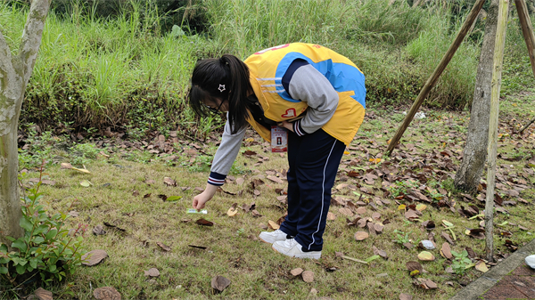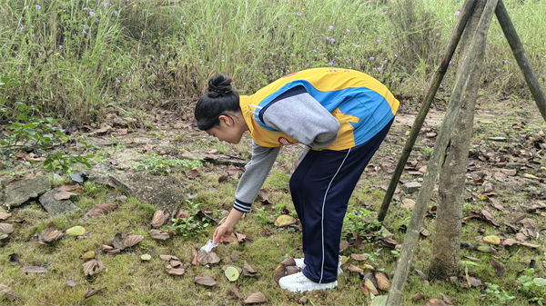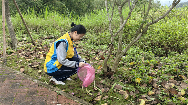 學員們認真檢查草叢中,石縫里,將發現的礦泉水瓶、易拉罐、煙頭、塑料袋分門別類地裝到垃圾袋中,所到之處絕不遺落一處垃圾雜物,下山后準確無誤地丟到山下的垃圾桶中。