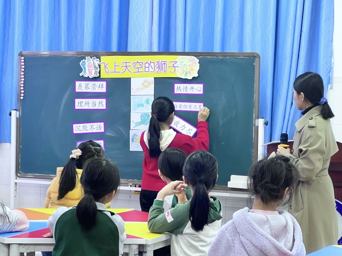 第一節課,莫家敏老師給我們帶來繪本課例《飛上天空的獅子》。在課堂上,莫老師積極引導,激發學生的閱讀興趣,調動學生課堂的參與度和積極性。借助繪本向學生們講授生活中要勇敢表達自己的想法,與家人、同伴、老師要理解與坦誠的道理。