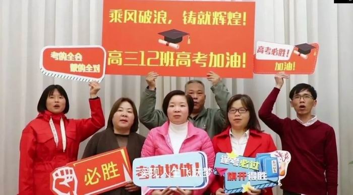 為了給即將參加高考的孩子們打氣加油,老師們和家長們悄悄錄好了視頻,用最直觀最激烈的方式給同學們吶喊、助威,聲聲加油,殷殷祝福、幕幕傳情。視頻中“成熟”的聲音、“稚嫩”的演技讓全場振奮,一時間掌聲、歡呼聲一浪蓋過一浪。