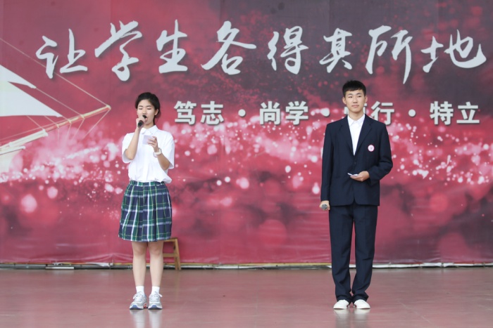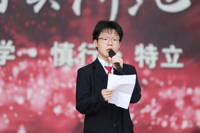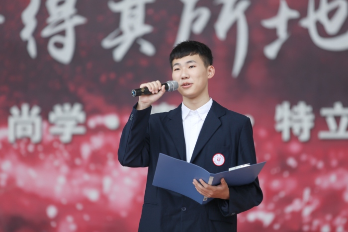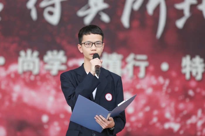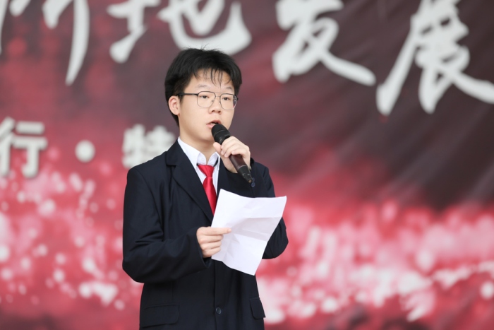 最后,由校學生會主席、2020級10班范偉光同學做學生會倡議。代表學生會和全體同學提出了做好學習、處理好師生關系、做好衛生清理等方面減輕班主任老師們工作負擔的倡議,學生會作為溝通同學與老師之間的橋梁,學生會也是班主任的得力助手。