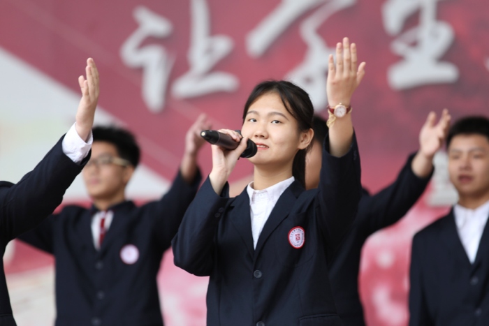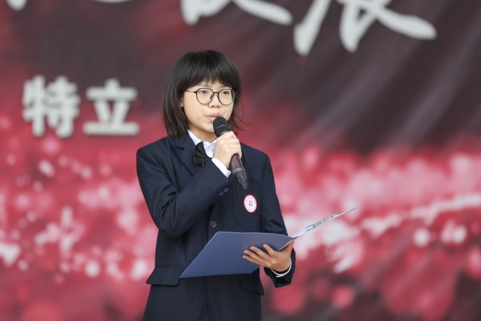 首先是升旗儀式,全校師生共同面向國旗,在洪亮國歌聲中,共同注視國旗冉冉升起。校團委副書記、2020級8班張潔同學做題為《一朝沐杏雨,一生念師恩》的國旗下講話。張潔同學的講話中代表團委對班主任的辛勤付出,表示感謝,并號召全體學生在這個時間里,與班主任老師們共同度過一個快樂、難忘的班主任節。在輕柔抒情的背景音樂中,2020級5班的劉泓岑、李啟俊、胡倬穎、徐焰四位同學深情朗誦寫給班主任老師們的贊歌——《流光》。從這首對班主任老師們愛的贊歌中,我們能夠感受到班主任對我們"諄諄教誨似親人,春風化雨如春蠶"的無私奉獻,讓我們更深刻感受到師恩似海的偉大。正如《流光》這首詩一般,老師您就是那抹指引我們前行的流光!2020級1班的音樂生為老師們傾情獻唱的歌曲《平凡頌》。雖是平凡的頌歌,但獻給的對象卻是于平凡中的默默付出的班主任。