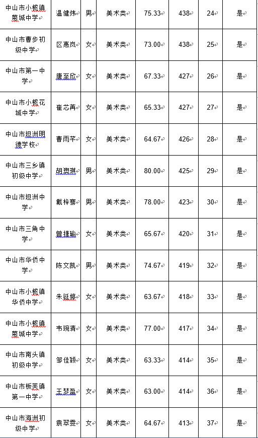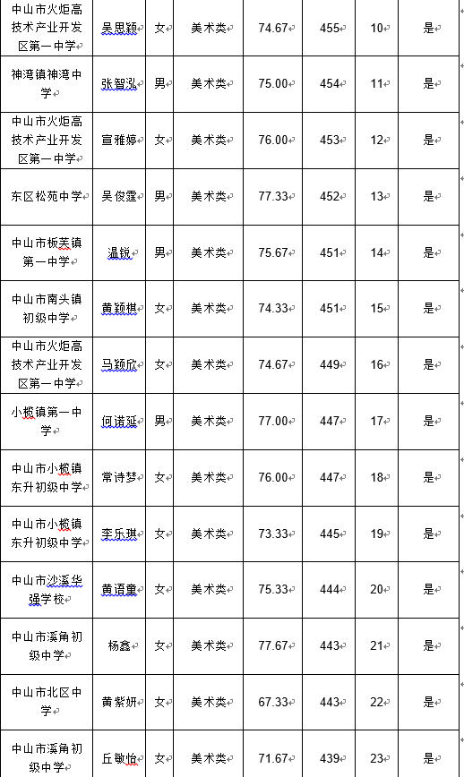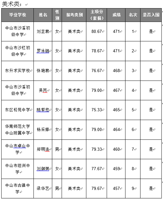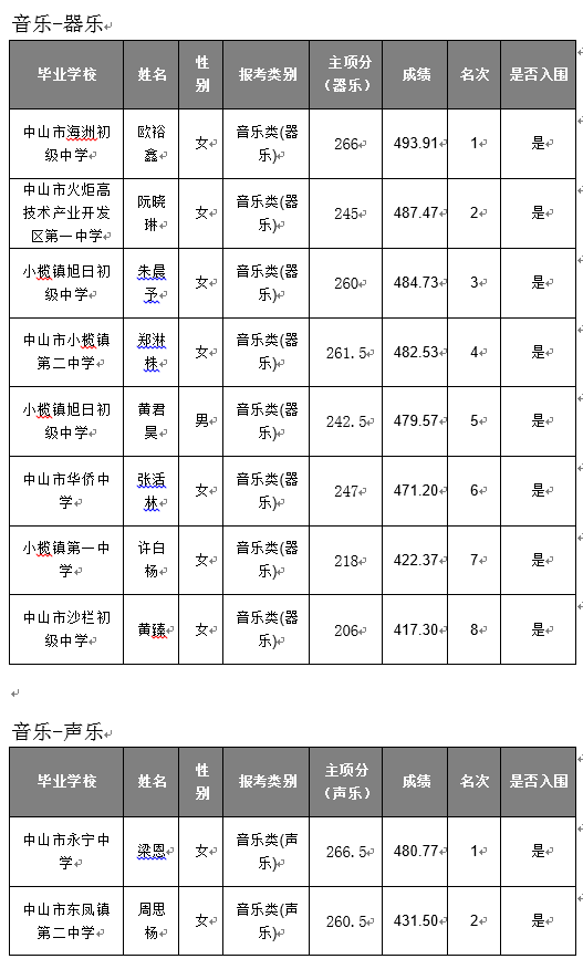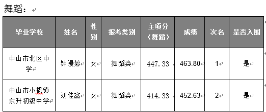 2022年中山市東升高級中學藝術生招生入圍名單公示