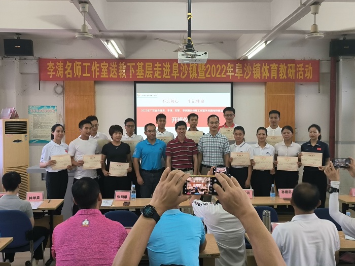 參加本次活動的有廣東省體育教研員肖建忠博士、廣東第二師范學院體育學院院長張細謙教授,中山市教體局體衛藝科科長戴淼元,中山市阜沙鎮黨委委員孫建忠,阜沙鎮教育和體育事務中心負責人、體育專干,豐聯小學校長等以及跟崗學員和阜沙鎮中小學全體體育教師。