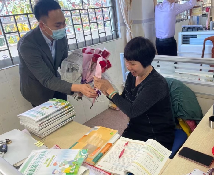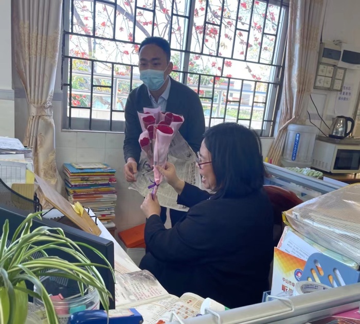 當(dāng)天上午9點(diǎn),為表達(dá)對(duì)中山市阜沙鎮(zhèn)豐聯(lián)小學(xué)全校女教師的關(guān)懷,阜沙鎮(zhèn)豐聯(lián)村委領(lǐng)導(dǎo)聯(lián)合阜沙鎮(zhèn)豐聯(lián)小學(xué)詹前秒校長(zhǎng),向一直默默地堅(jiān)守在教學(xué)一線辛勤耕耘和無(wú)私付出的女教師們送去了美好的祝福和親切的問(wèn)候,并送上了節(jié)日的鮮花和美味的蛋糕,使她們度過(guò)了一個(gè)特殊而有意義的節(jié)日。
