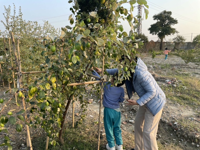 活動前,詹前秒校長和各班班主任向每位同學講述如何清理雜草、如何辨別青棗的成熟程度、如何根據成熟度來進行正確的采摘,以及勞動過程中的注意事項,并且進行了示范。認真聽完老師指導并且完成了除草任務的同學們小心翼翼走進青棗地里仔細觀察、尋找、挑選、詢問、研究……最后再小心采摘。就像一群勤勞的小蜜蜂,采自然地 “花”,釀“知識”的蜜。第一次嘗試從播種到豐收,孩子們興奮不已,每張小臉上都掛著驕傲與喜悅。