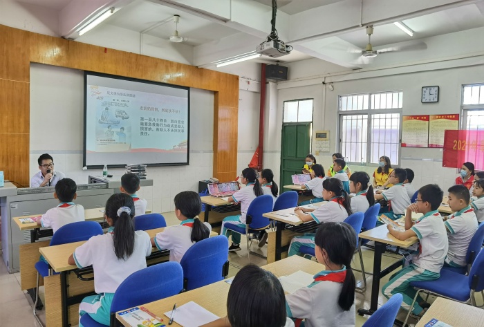 首先,梁德永律師詳細講解什么是《中華人民共和國民法典》。接著,通過情境創設、問題設疑、案例分享的方式,講述《中華人民共和國民法典》中與生活息息相關的規定。用生動形象的案例,深入淺出地解析了不同年齡階段需要承擔的法律責任以及如何依法保護自身合法權益,舉例說明了高空拋物要承擔侵權責任、見義勇為受法律鼓勵、個人信息保護等《中華人民共和國民法典》中的亮點。最后,通過提問方式讓學生鞏固《中華人民共和國民法典》中重要的知識,每個學生都積極爭做“民法知識小博士”,活動現場學生學習熱情高漲。