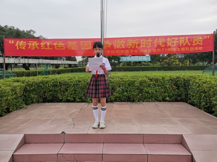 為深入學(xué)習(xí)貫徹習(xí)近平總書記對(duì)少年兒童及少先隊(duì)工作的重要論述,落實(shí)少先隊(duì)三個(gè)政策文件精神,豐聯(lián)小學(xué)特于10月13日,舉辦了一場(chǎng)主題為“傳承紅色基因,爭(zhēng)做新時(shí)代好隊(duì)員”的慶祝中國(guó)少年先鋒隊(duì)建隊(duì)71周年主題隊(duì)日活動(dòng)。