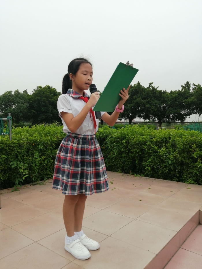 升旗儀式后,豐聯小學四(2)班學生代表帶來以《歡度中秋,喜迎國慶》為主題的國旗下講話。首先,講述中秋節的來源和關于中秋節的傳統習俗。緊接著,敘述了在祖國母親生死存亡的危難關頭,一代代志士仁人矢志不渝地奉行著“為中國人民謀幸福,為中華民族謀復興”的信念,團結帶領中國人民一路披荊斬棘、奮勇向前,久經磨難的中華民族才迎來了從站起來、富起來到強起來的偉大飛躍。最后,呼吁同學們應時刻牢記自己的使命,擔負起建設祖國、建設家園的重任。