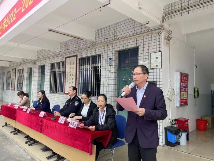在開學典禮上,學校邀請了法制副校長林慶初警官到學校,給師生作了關于法制知識以及安全教育的專題講座。接著詹前秒校長給全校師生致詞,詹校長在致辭中提到要踔厲奮發,迅速把思想行動統一到新學期的部署上來,要歸零,歸心,歸位,扎實推進各項工作有序開展,并對本學期的工作與學習提出了新的希望,希望同學們珍惜時間、努力學習和養成良好的行為習慣,為實現新學期的新目標共同努力!