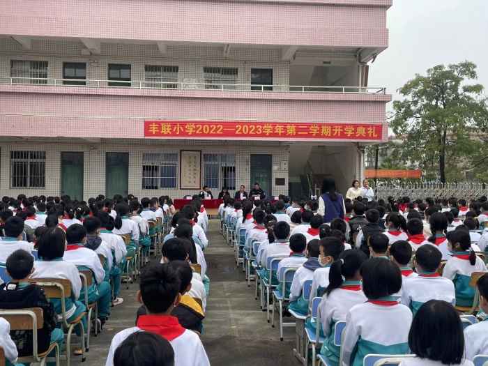 2023年2月6日,中山市阜沙鎮豐聯小學學校教職工、門衛安保、值日學生、志愿者服務隊等全部到位,各司其職。迎著早晨的第一縷陽光,校園和學子又相遇了。老師、學生有序進校門,臉上都洋溢著期盼已久的興奮和喜悅。