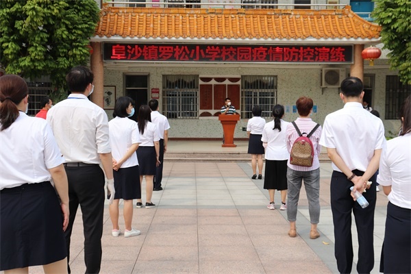 校園安全無小事,在新型冠狀病毒流行的今天,為了進一步保障校園師生生命安全和身體健康,5月9日下午,阜沙鎮羅松小學舉行了校園新冠肺炎疫情防控應急演練,全體教職員工、行政參加了演練。演練中,阜沙鎮黨委副書記孫海卿、文教衛計局局長黃桂生、社區衛生服務中心主任黃極信、教育事務指導中心主任徐瑞欽出席,并全程觀摩了演練。