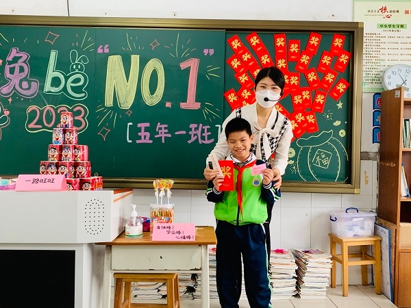 早上八點,開學典禮正式開始,金錫聰校長發表熱情洋溢的新年致辭,介紹了一個學期以來羅松小學各方面取得的進步與突破,并祝福全體師生新的一年更加優秀,更加幸福。接著,法治副校長進行法治講座,用具體的事例忠告和規勸全體同學多行善事不作惡,做合格守法公民。李宗懇主任宣讀上學期期末表彰名單,表彰先進,激勵后進。開學入班儀式中,各班班主任設計了主題鮮明、形象動人的黑板報,瑞兔迎春,“兔”飛猛進,并精心準備各種小禮品,創設各種別具特色的小活動,如有班級準備了藏著各種驚喜的抽獎紅包,給同學們制造意想不到的快樂,這些別具創意的場景和游戲促使同學們快速融入校園生活。