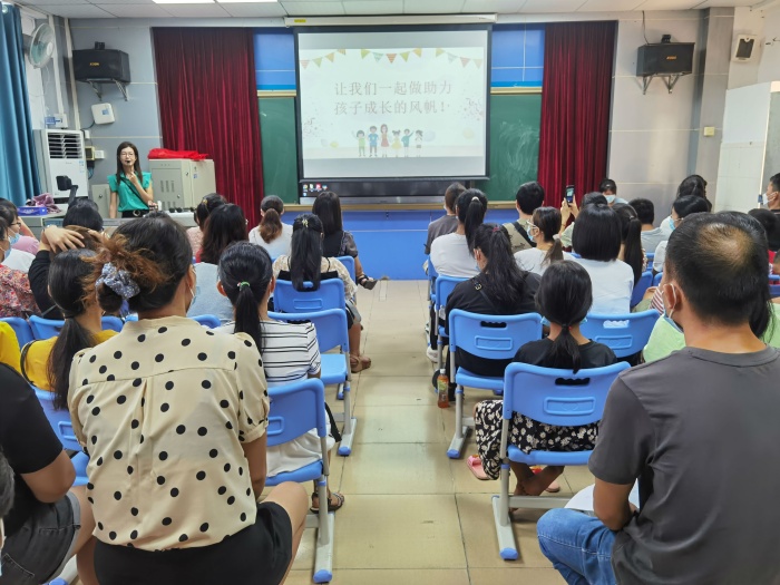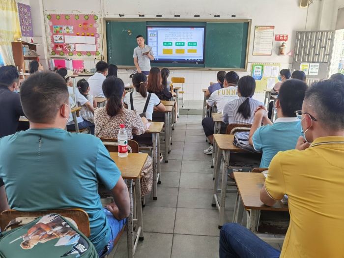 與此同時,新生、插班生家長們在老師的引導(dǎo)下來到多媒體室,參加新生家長培訓(xùn)。首先由吳鎮(zhèn)昌副校長發(fā)表講話,他向家長們介紹學(xué)校的辦學(xué)理念及特色,進一步加深了家長們對牛角小學(xué)的了解和認(rèn)識。然后由徐圳輝副主任介紹學(xué)校的防疫要求、托管配餐,著重強調(diào)學(xué)生在校安全等事宜。之后由牛角小學(xué)優(yōu)秀班主任王喬林、梁巧娟、洪倩三位老師開展講座,她們從作息時間、學(xué)習(xí)生活準(zhǔn)備工具、習(xí)慣培養(yǎng)三方面,強調(diào)家長們要關(guān)注孩子學(xué)習(xí)習(xí)慣的培養(yǎng)。最后由任思主任總結(jié)本次培訓(xùn),她提到家長要重視家庭教育,同時加強家校交流合作,創(chuàng)造共贏。新生家長會的召開讓學(xué)生更快速地融入了新學(xué)期的學(xué)習(xí)生活。
