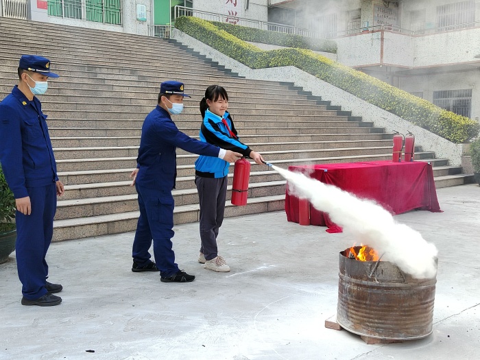 隨后,中山市阜沙鎮(zhèn)消防救援局的消防戰(zhàn)士向全體師生詳細講解和示范滅火器的使用步驟,演示了正確使用滅火器方法、滅火步驟與動作要領,并邀請高年級的學生、保安、班主任等人員代表動手體驗滅火操作,通過滅火器的使用步驟及運用技巧的學習,師生們的防火技能和能力得到有效地提高。